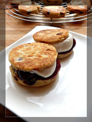 Die Küchlein können sofort pur, mit etwas Staubzucker genossen werden oder man lässt sie etwas abkühlen, schneidet sie vorsichtig auseinander und füllt sie mit Roter Grütze und geschlagener Pflanzensahne.