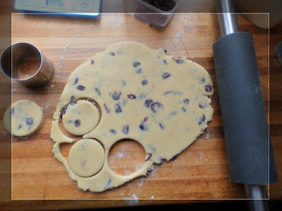 Den Teig auf einer leicht bemehlten Arbeitsplatte ca 1 Zentimeter ausrollen und 6 cm große Kreise ausstechen.